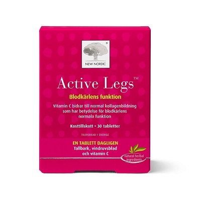 Active Legs innehåller vitamin C som bidrar till normal kollagenbildning som har betydelse för blodkärlens normala funktion.