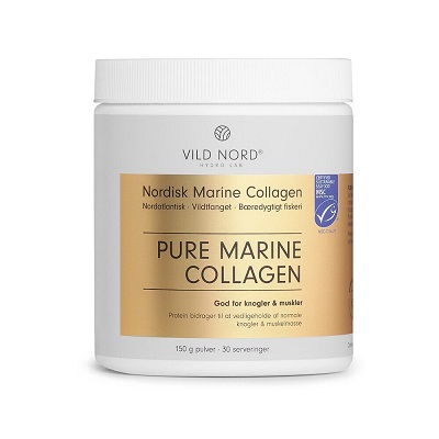Pure Marine Collagen från Vild Nord är ett kollagenpulver med hög proteinhalt. Det utvinns från vildfångad torsk i Nordatlanten och består av enbart hydrolyserade kollagenpeptider. Du får alltså ett naturligt kollagen utan tillsatser.