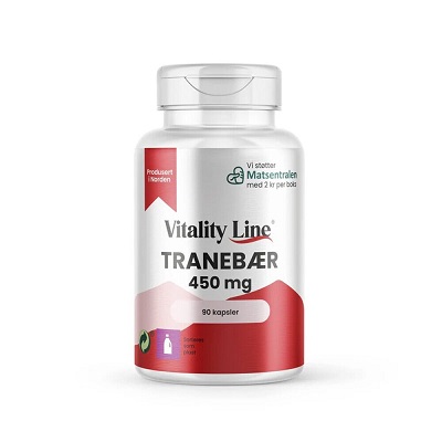 Vitality Line Tranebær innehåller 450 mg extrakt av tranbär (Vaccinium macrocarpon) per kapsel. Tranbär har länge använts inom traditionell växtbaserad egenvård och förknippas särskilt med urinvägar och blåsfunktion.