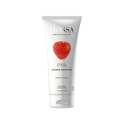 Mossa Vitamin Moist Conditioner är ett naturligt balsam som återfuktar och reparerar håret. Med jordgubbsfröolja och kokosolja blir håret mjukt, följsamt och lätt att hantera. Balsamet tillför glans och näring utan att tynga ner. Veganskt och certifierat enligt COSMOS Natural.