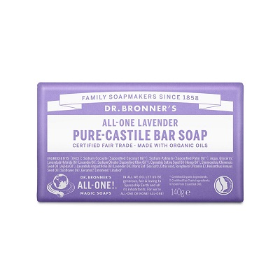 Bar Soap Lavender från Dr. Bronner är en fast och skonsam tvål med naturliga råvaror. Doften av lavendel ger en rogivande känsla vid användning.