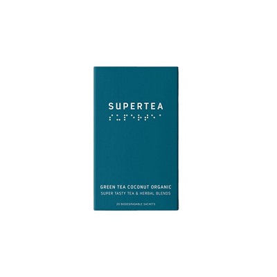 Supertea Green Tea Coconut Organic 20 påsar är ett ekologiskt te som sprudlar av en supersmak av grönt te & kokos. Släck törsten & njut av varje klunk.Unna dig grönt te och kokos! Det är ett utsökt ekologiskt te som sprudlar av en supersmak av grönt te och kokos. Släck törsten och njut av varje klunk. Det är kul i en kopp med kokossmak!