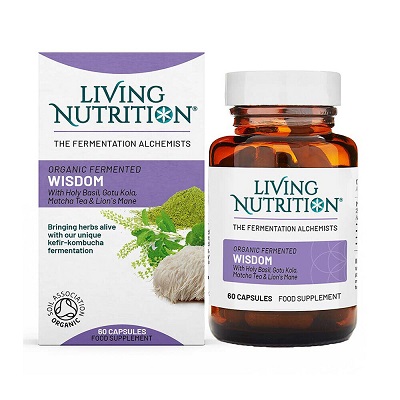 Living Nutrition Wisdom är ett ekologiskt kosttillskott. Det innehåller fermenterade örter som helig basilika, gotu kola, matcha och igelkottstaggsvamp. Alla örter är kända från traditionell växtbaserad användning.