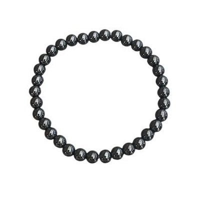 Ett elastiskt armband med 6 mm pärlor av hematit – en naturlig mineral med metallisk lyster.